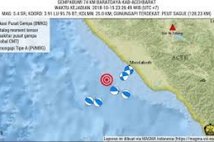 nusakini.com-Aceh-Pusat Vulkanologi Dan Mitigasi Bencana Geologi (PVMBG), Badan Geologi, Kementerian Energi dan Sumber Daya Mineral (ESDM), Selasa (16/10) melaporkan telah terjadi gempa bumi di baratdaya Kabupaten Aceh B...