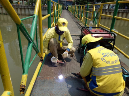 nusakini.com-Jakarta-Jembatan Penyeberangan Orang (JPO) Jl Pisang Batu, RT 04/10, Kelurahan Mangga Dua Selatan, Sawah Besar yang membentang di atas Kali Ciliwung, diperbaiki.