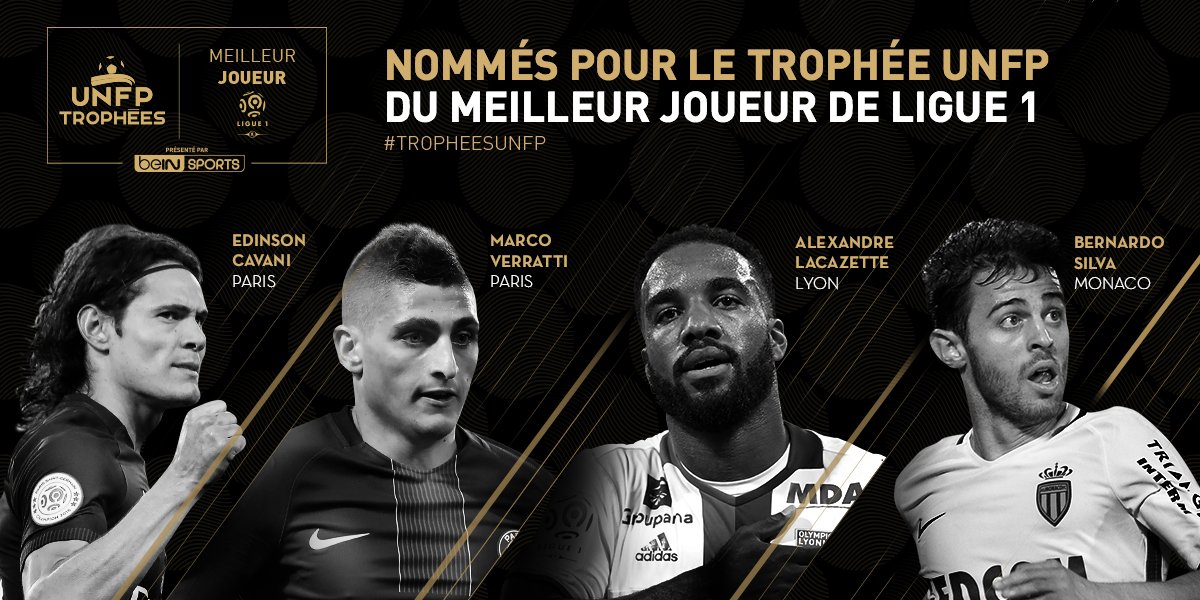 Untuk kateogri lain, terdapat Pemain Terbaik Ligue 1 Prancis yang dikuasai oleh duo pilar Paris Saint-Germain, Edinson Cavani dan Marco Veratti, striker Olympique Lyon Alexandre Lacazette, dan playmaker AS Monaco Bernardo Silva. Musim lalu, penghargaan kategori ini dimenangi oleh Zlatan Ibrahimovic, yang total sudah tiga kali memenanginya selama empat musim berkarier di PSG.