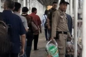 nusakini.com-Jakarta-Aparat satpol PP Kecamatan Palmerah menertibkan sejumlah pedagang di Jembatan Penyebrangan Orang (JPO) Slipi Jaya, Selasa (25/9). Mereka ditertibkan karena mengganggu kenyamanan pengguna jalan. ...