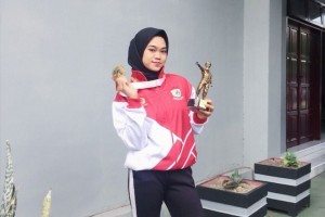 nusakin.com-Pinrang--Nurul Ummi Ramadhani tidak mampu menahan tangis ketika mampu mempersembahkan medali emas buat Kota Makassar di Cabang Taekwondo Kyourugi Putri Under 46 kg."Saya pernah mengalami cedera lutut yang san...