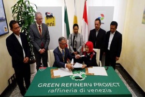 nusakini.com-Venesia-PT Pertamina (Persero) dan Eni menandatangani nota kesepahaman kerjasama terintegrasi diantaranya di sektor hilir yaitu potensi pengembangan kilang ramah lingkungan dan peluang bisnis perdagangan, ba...