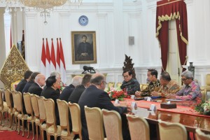 nusakini.com - Jakarta - Presiden Joko Widodo (Jokowi) didampingi Menko Perekonomian Darmin Nasution, Sekretaris Kabinet Pramono Anung, dan Wakil Menteri Luar Negeri (Wamenlu) AM. Fachir menerima Delegasi Senat Republik...