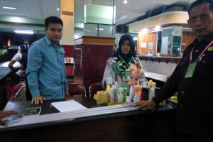 nusakini.com--Sejumlah barang bawaan jemaah haji kloter I asal Situbondo Jawa Timur disita petugas saat akan keluar dari Asrama Haji Sukolilo Surabaya pada Selasa (17/07). Barang bawaan jemaah haji yang disita petugas an...