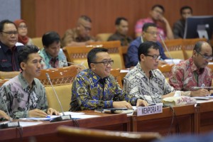 nusakini.com--Menpora Imam Nahrawi didampingi Sesmenpora Gatot S Dewa Broto dan para pejabat Eselon I dan II Kemenpora melakukan Rapat Kerja (Raker) bersama Anggota Komisi X DPR RI di ruang rapat Komisi X DPR RI Gedung N...