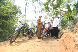 nusakini.com--Menteri Desa, Pembangunan Daerah Tertinggal, dan Transmigrasi Eko Putro Sandjojo meninjau program padat karya tunai dengan anggaran dari dana desa yang dilakukan oleh warga di Desa Bumiwangi, Kecamatan Cipa...