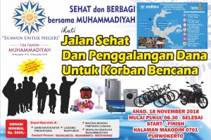 nusakini.com-Banyumas-Pimpinan Daerah Muhammadiyah Banyumas akan menggelar Jalan Sehat dalam rangka Milad 106 Tahun Muhammadiyah bertajuk ‘Ta’awun untuk Negri’. Jalan sehat di Banyumas ini mengambil tema SEHAT dan BERBAG...