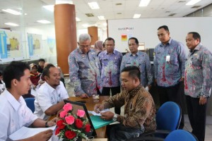 nusakini.com-Jakarta-Walikota Jakarta Utara, Syamsuddin Lologau memantau langsung proses pendaftaran program solusi rumah warga (Samawa) DP 0 Rupiah di Gedung PTSP, Kantor Walikota Jakarta Utara, Kamis (1/11). Antusiasme...