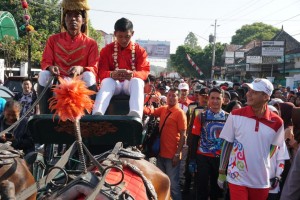 nusakini.com-Solo- Puluhan atlet asal Jawa Tengah yang berlaga di Asian Games 2018 diarak keliling Kota Solo. Bak raja dan ratu kerajaan, para atlet duduk di kereta kuda dikawal oleh para pejabat dan masyarakat dengan ir...
