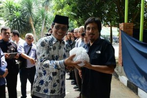 nusakini.com - Menteri Pertanian Andi Amran Sulaiman menyerahkan sapi qurban lokal jenis PO dengan berat 600 kg ke pengurus Masjid Nurul Iman, Kementerian Pertanian, Rabu (22/8/2018). Karena Menteri Amran bersama istri s...