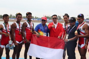 nusakini.com--Tim dayung putra Indonesia menyumbang medali emas dari nomor Pria Ringan Delapan (LM8-) setelah mengungguli tim Uzbekistan dan Hongkong pada perlombaan di Jakabaring Dayung Danau, Jumat (24/8). Tanzil Hadid...