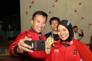 nusakini.com--Atlet panjat tebing Indonesia Aries Susanti Rahayu sukses meraih medali emas dari nomor speed putri Asian Games 2018 yang berlangsung di JSC Sport Climbing, Palembang, Kamis (23/8) malam. Ia mengalahkan atl...