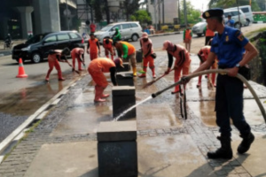 nusakini.com - Jakarta - Satu unit mobil pemadam dikerahkan Sudin Penanggulangan Kebakaran dan Penyelamatan (Gulkarmat) Jakarta Utara dan Kepulauan Seribu untuk membantu proses pembersihan pedestrian serta saluran di sep...