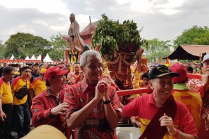 nusakini.com--Kirab Budaya Laksamana Cheng Ho di Kelenteng Sam Poo Kong Kota Semarang, Minggu (12/8) siang berlangsung meriah. Ribuan pengunjung berbaur menyaksikan beragam seni budaya akulturasi Cina, Jawa, dan Islam ya...