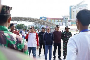 nusakini.com--Kepala Dinas Pemuda dan Olahraga Kota Makassar, Achmad Hendra Hakamuddin mendampingi Walikota Makassar, Moh. Ramdhan Pomanto saat meninjau proses latihan Paskibra Kota Makassar di Lapangan Karebosi, Jumat (...
