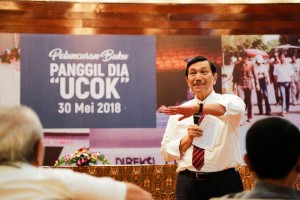 nusakini.com - Jakarta - Menteri Koordinator Bidang Kemaritiman, Luhut B. Pandjaitan menjadi tamu utama sekaligus mewakili keluarga dalam acara peluncuran buku biografi “Panggil Dia Ucok” di Jakarta, Rabu (30/5/2018). Bu...