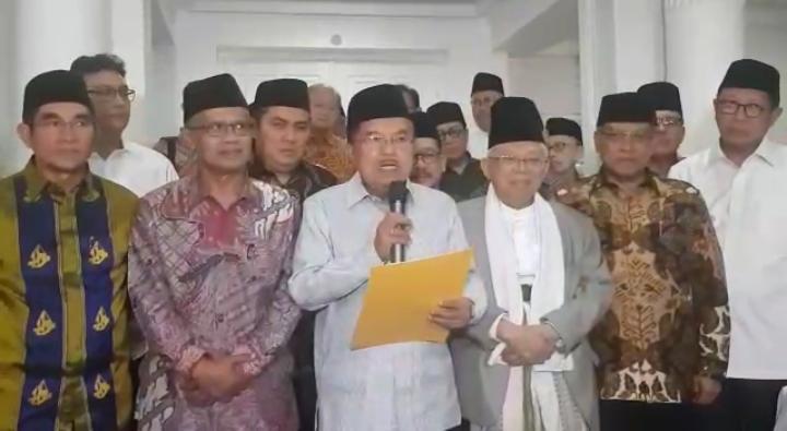 Berikut ini, pernyataan bersama pimpinan dan tokoh ormas Islam yang dibacakan langsung oleh Wakil Presiden: