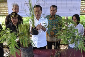 nusakini.com-Wonogiri- Presiden Joko Widodo dan Gubernur Jawa Tengah, Ganjar Pranowo kompak membawa istri masing-masing saat melakukan penanaman pohon di Desa Jatisari Kecamatan Jatisrono Kabupaten Wonogiri, Sabtu (15/2...