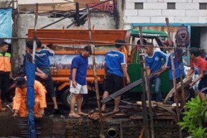 nusakini.com-Jakarta-Pendukung klub sepak bola Jakarta Utara (Persitara) yang tergabung dalam komunitas NJ Mania, ikut aksi bersih-bersih lingkungan di beberapa lokasi permukiman warga terdampak banjir, Minggu (5/1).&nbs...