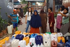 Relawan UQmo Makassar Distribusikan Air Bersih di Kelurahan Rappokalling