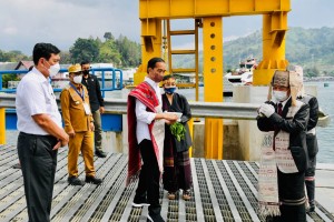nusakini.com-Toba-Presiden RI Joko Widodo (Jokowi) meresmikan tujuh pelabuhan penyeberangan dan empat kapal motor penumpang (KMP) di Kawasan Dermaga Pelabuhan Ajibata, Kabupaten Toba, pada Rabu, 2 Februari 2022. Presiden...