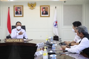 nusakini.com-Jakarta-Menpora Amali didampingi Deputi Peningkatan Prestasi Olahraga Chandra Bhakti dan Stafsus Pengembangan dan Prestasi Olahraga Mahfudin Nigara, menerima President NOC Indonesia (Ketum KOI) Raja Sapta Ok...