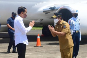 nusakini.com-Makassar- Pelaksana Tugas (Plt) Gubernur Sulawesi Selatan, Andi Sudirman Sulaiman menyambut kedatangan Presiden Republik Indonesia (RI) Joko Widodo, Selasa 23 November 2021.Jokowi tiba di Bandara Internasion...