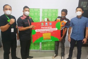 nusakini. com-Makassar- Gojek dan Perumda Parkir Makassar menyerahkan hadiah kepada Juru Parkir yang meraih juara terbaik dalam hal ketepatan pembayaran gopay, Jum'at 27 Agustus 2021.Hal ini sesuai Visi Misi dari inovas...