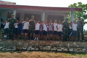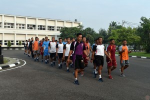 nusakini.com--Surabaya--Wadanmenbanpur 2 Marinir Letkol Marinir Darwin Tambunan memimpin olah raga bersama seluruh Perwira Menbanpur 2 Marinir, di depan Resimen Bantuan Tempur 2 Marinir, Kesatrian Marinir Sutedi Senaputr...