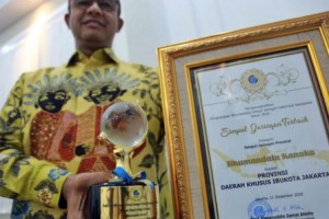 nusakini.com-Jakarta-Pemerintah Provinsi (Pemprov) DKI Jakarta berhasil mendapatkan penghargaan Bhumandala Kanaka (medali emas) Simpul Jaringan Terbaik kategori Simpul Jaringan Provinsi dari Badan Informasi Geospasial (B...