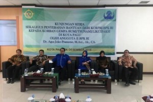 nusakini.com--Palu--Anggota II Badan Pemeriksa Keuangan (BPK), Agus Joko Pramono, melakukan kunjungan kerja sekaligus menyerahkan bantuan kemanusiaan kepada BPK Perwakilan Provinsi Sulawesi Tengah, di Kantor BPK Perwakil...