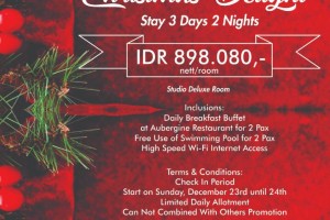 nusakini.com-Makassar-Citadines Royal Bay Makassar menghadirkan paket "Christmas Delight" untuk periode Check In pada 23-24 Desember.Harga paket yang ditawarkan adalah Rp 898.080 nett /room/untuk tipe kamar Studio Deluxe...