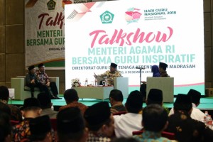 nusakini.com-Bandung- Menteri Agama Lukman Hakim Saifuddin siang ini, Sabtu (08/12), menggelar talkshow bersama guru inspiratif dari sejumlah madrasah. Talkshow digelar di salah satu hotel di Bandung. Menag L...