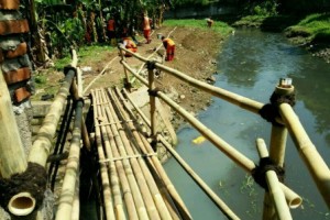 nusakini.com-Jakarta-15 petugas Penanganan Prasarana dan Sarana Umum (PPSU) Kelurahan Cipinang Melayu, Makasar, Jakarta Timur membangun jembatan darurat. Jembatan ini menghubungkan Taman Piknik dengan lokasi wisata agro...