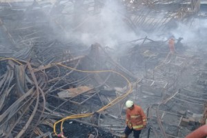 nusakini.com-Jakarta-Percikan api yang muncul di lokasi kebakaran gedung bekas pabrik furnitur di Jl Kapuk Utara 2, RT 01/03 Kelurahan Kapuk Muara, Penjaringan, Minggu (18/11), berhasil dipadamkan petugas Sudin Penanggul...