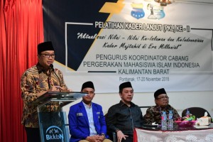 nusakini.com-Pontianak-Menpora Imam Nahrawi membuka Pelatihan Kader Lanjut (PKL) ke-II Pengurus Koordinator Cabang Pergerakan Mahasiswa Islam Indonesia (PMII) Kalimantan Barat (Kalbar) di Aula BKKBN, Pontianak, Sabtu (17...