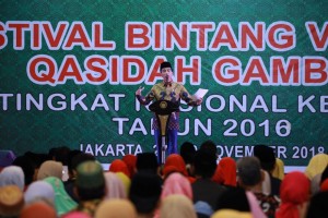 nusakini.com-Jakarta-Presiden Joko Widodo (Jokowi) menutup Festival Bintang Vokalis Qasidah Gambus Tingkat Nasional ke XXIII tahun 2018 di Pondok Gede, Jakarta Timur, Kamis (28/11). Presiden Jokowi di tengah sambu...