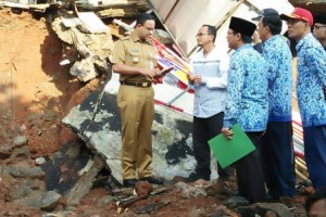 nusakini.com-Jakarta-Gubernur DKI Jakarta, Anies Baswedan meninjau lokasi longsor di Jalan Pesona IX, Kelurahan Kalisari, Pasar Rebo, Jakarta Timur, Selasa (27/11). Penanganan longsor akan dilakukan segera dengan cepat a...