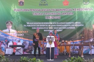 nusakini.com-Jakarta-Kepala Dinas Pemberdayaan Perlindungan Anak dan Pengendalian Penduduk (PPAPP) DKI Jakarta, Tuty Kusumawati menutup kegiatan penggalangan TNI Manunggal KB Kesehatan (TMKK) tingkat DKI Jakarta, di Plaz...