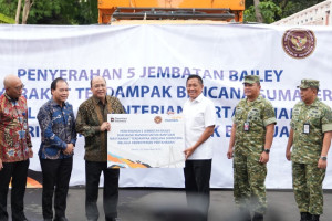 nusakini.com, Jakarta — Wakil Menteri Pertahanan Republik Indonesia (Wamenhan RI) Donny Ermawan Taufanto menerima penyerahan bantuan 5 (lima) unit Jembatan Bailey dari Bank Mandiri untuk masyarakat terdampak bencana di w...