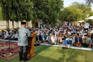 nusakini.com--Sekitar lebih 300 masyarakat Indonesia dan muslim dari beberapa negara memenuhi Wisma Duta KBRI Athena pada Minggu 25 Juni 2017 untuk menunaikan sholat Idul Fitri 1438 H sekaligus perkenalan Duta Besar Ferr...