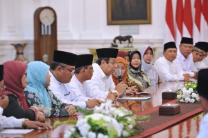 Foto/Seskab nusakini.com - Presiden Joko Widodo buka puasa bersama qari, qariah, dan anak yatim serta anak berkebutuhan khusus di Istana Negara, Senin (12/6/2017) petang.Sebelum berbuka, diumumkan 6 orang (3 putra dan 3...