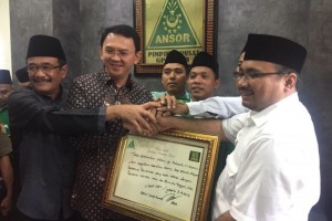 Foto/Net nusakini.com - Calon Gubernur DKI Jakarta nomor urut dua Basuki Tjahaja Purnama (Ahok) mendatangi kantor DPP GP Ansor di Jalan Salemba, Senen, Jakarta Pusat. Dia datang setelah sebelumnya, pasanganny...