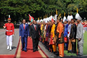 Foto: Dokumentasi Setkab nusakini.com - Presiden Joko Widodo (Jokowi) didampingi Ibu Negara Iriana Joko Widodo menerima kunjungan kenegaraan Presiden Republik Afrika Selatan, Jacob Zuma, dan istrinya Bongi Ngema...