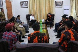 nusakini.com--Walikota Medan Drs HT Dzulmi Eldin S,MSi didampingi Kepala Dinas Pemuda dan Olah Raga ( Dispora) kota Medan Marah Husin Lubis,SH menerima Audensi dari Satuan Mahasiswa Pemuda Pancasila (SATMA PP) Kota Meda...