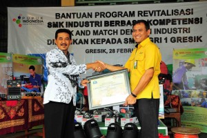 Foto: Dokumentasi PG nusakini.com - PT Petrokimia Gresik (PG) memberikan bantuan peralatan workshop pengelasan kepada SMK PGRI 1 Gresik. Bantuan secara simbolis diserahkan Direktur SDM & Umum PG, Rahmad Pribadi...