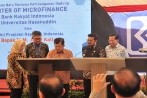 nusakini.com--Center of Microfinance pertama di Indonesia dibangun di Universitas Hasanuddin (Unhas) Makassar. Wakil Presiden RI, HM Jusuf Kalla didampingi Gubernur Sulsel Syahrul Yasin Limpo, melakukan peletakan batu...