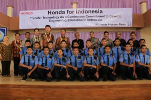 Foto: Dokumentasi Honda nusakini.com - PT Honda Prospect Motor (HPM) meresmikan kerjasama Program Pendidikan Dasar bagi Teknisi Honda dengan SMKN (Sekolah Menengah Kejuruan Negeri) 3 Kuningan, pada tanggal 27 Janu...
