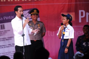 Foto: Humas Setkab nusakini.com - Mengawali kunjungannya ke Kota Ambon, Maluku, Rabu (8/2/2017), Presiden Joko Widodo (Jokowi) menyerahkan bantuan sosial non tunai Program Keluarga Harapan (PKH) dan Kartu Indonesia Seha...