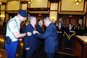 nusakini.com - Menteri Pertahanan Ryamizard Ryacudu, Senin (9/1/2016), mengangkat sumpah, serah terima jabatan (sertijab) Dirjen Pothan Kemhan yang baru Pembina Utama Madya IV/d drs. Sutrimo, M.M., M.Si dan Staf Ahli Men...